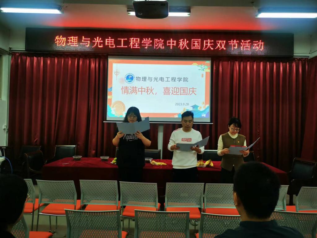 分工会在会议室隆重举办“情满中秋 喜迎国庆”主题诗朗诵会。学院领导班子和教职工共同参与活动,活动由分工会主席郭颖主持。