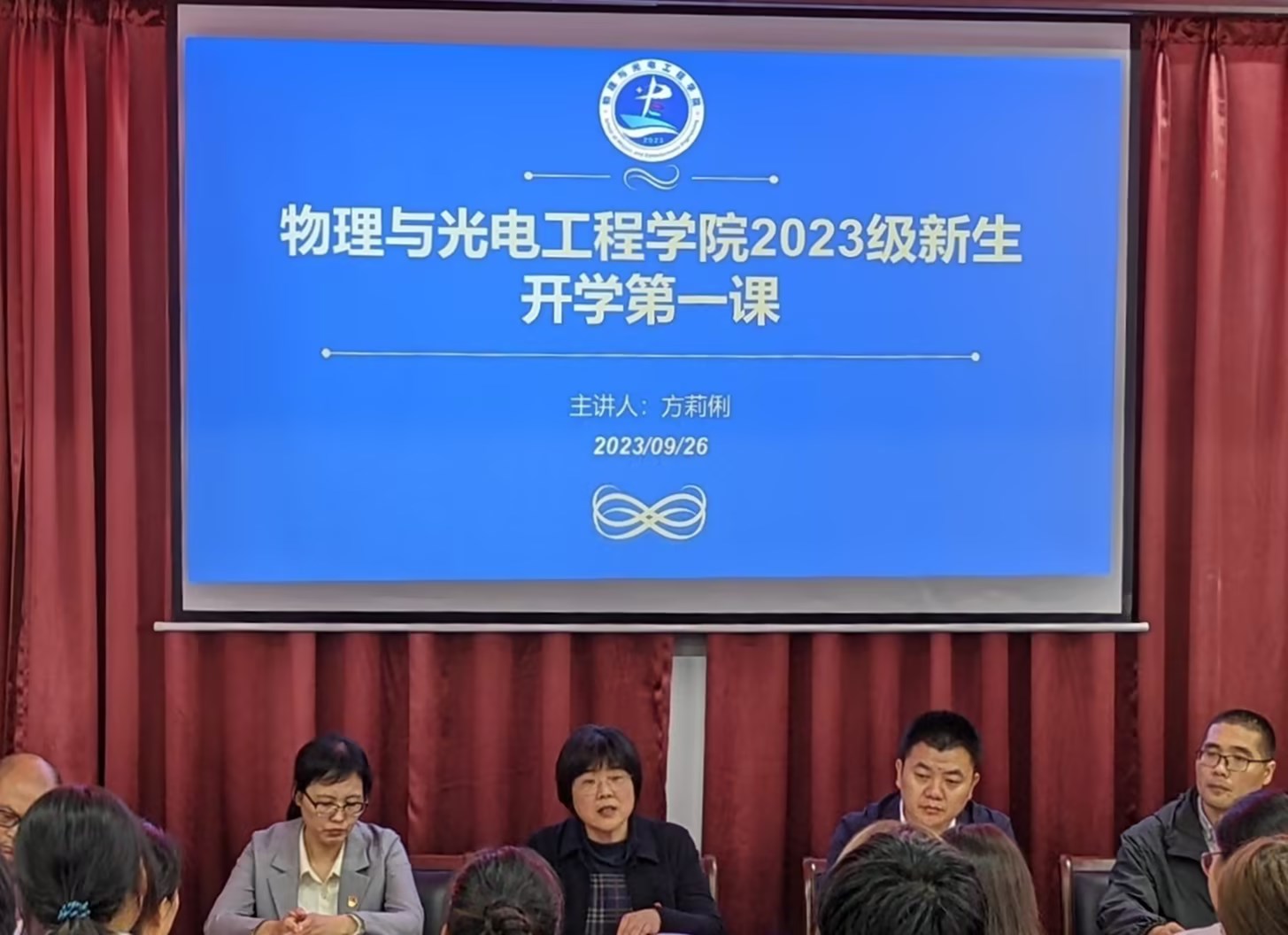 在龙湖校区2号实验楼举办2023级新生见面会暨入学教育启动仪式。学院领导、系主任、学工人员、全体23级本科生和研究生参加,会议由党总支副书记刘自范主持。