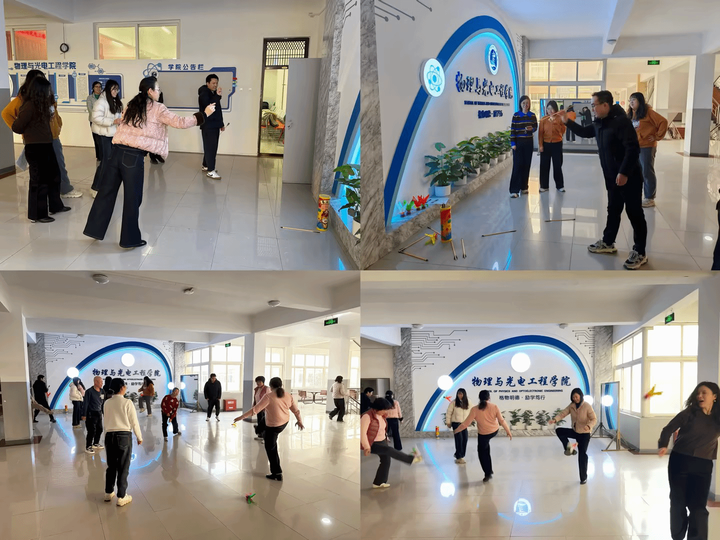 工会在学院中庭组织开展了迎新春趣味体育活动。投壶与踢毽子两项传统文体活动,吸引了众多教职工踊跃参与。