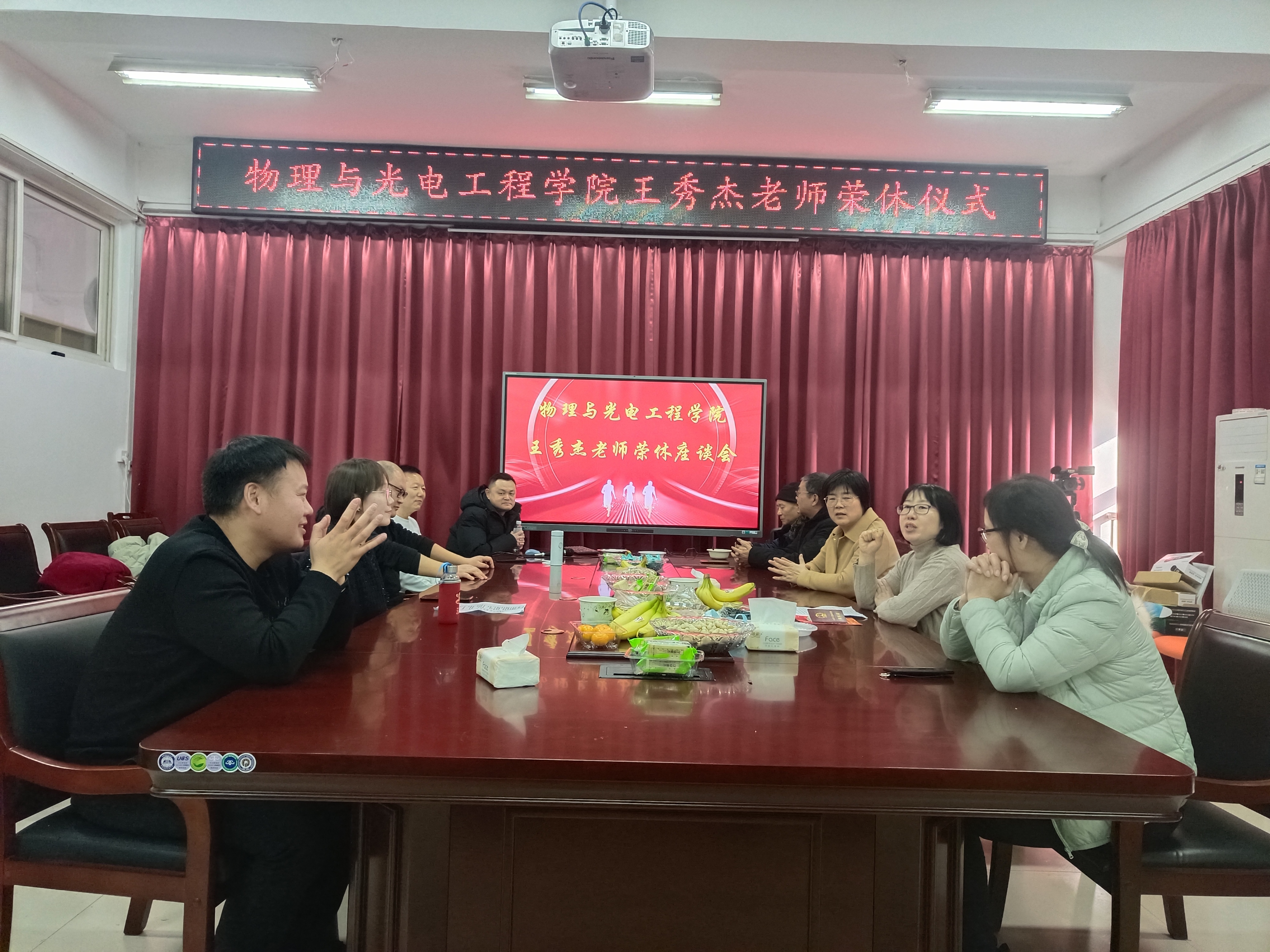 近日,物电学院齐聚一堂,为光荣退休的王秀杰老师举办了一场温馨而隆重的荣休仪式,仪式由分工会主席郭颖主持,离退处处长郭亚红、发展规划处处长张明参加。