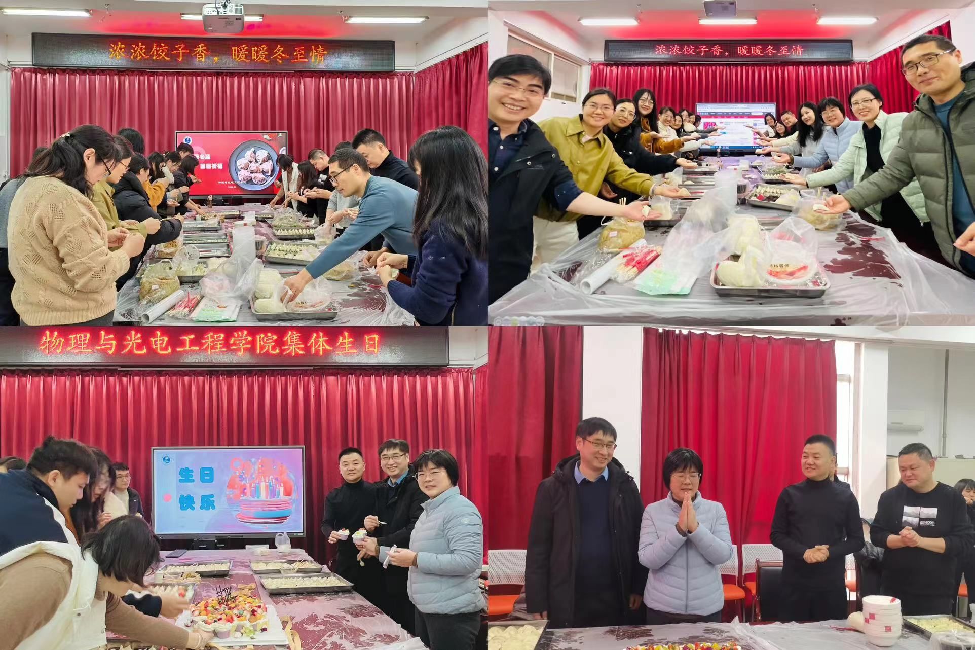 在2号实验楼341会议室举办了一场别开生面的冬至主题活动,活动包括包饺子和集体生日会两个部分,副校长杨坤、发展规划处处长张明和学院全体教职工参加活动。