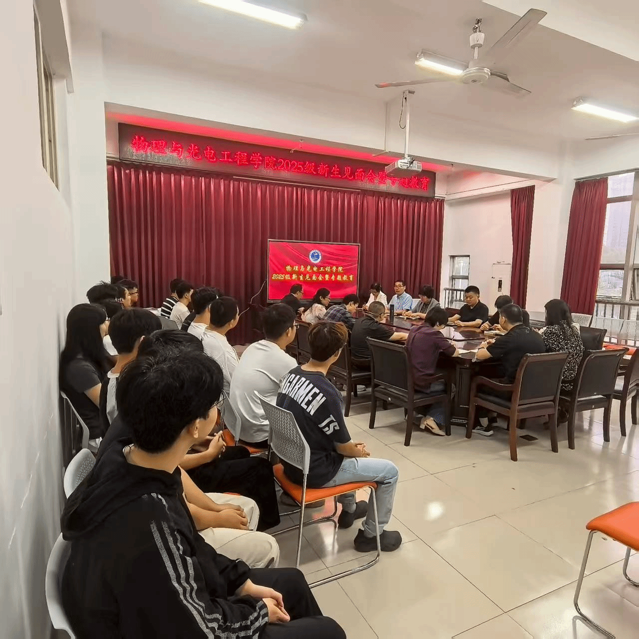 2025级研究生新生见面会暨专题教育在学院会议室举行。学院党总支书记张海斌、执行院长方莉俐、副院长郑源、学术副院长王建军,全体研究生导师、研究生秘书、辅导员以及全体2025级研究生新生参加会议,会议由党总支副书记刘自范主持。