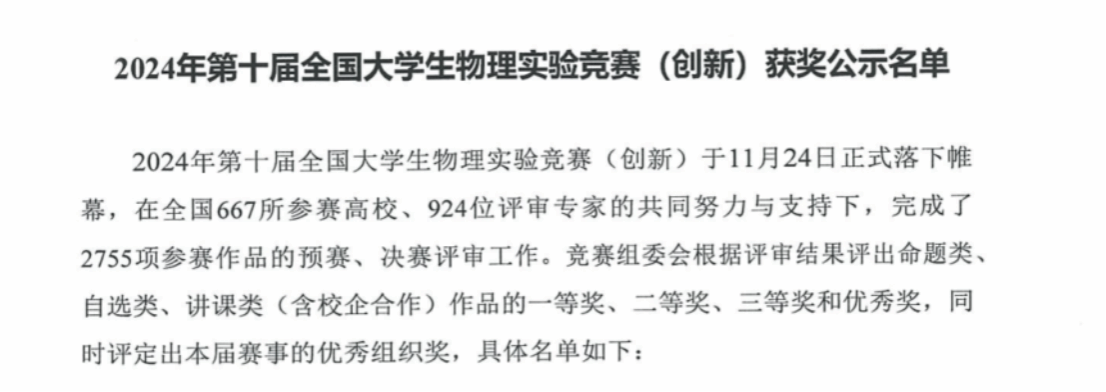 学子在第十届全国大学生物理实验竞赛(创新)中荣获三等奖两项、优秀奖一项!