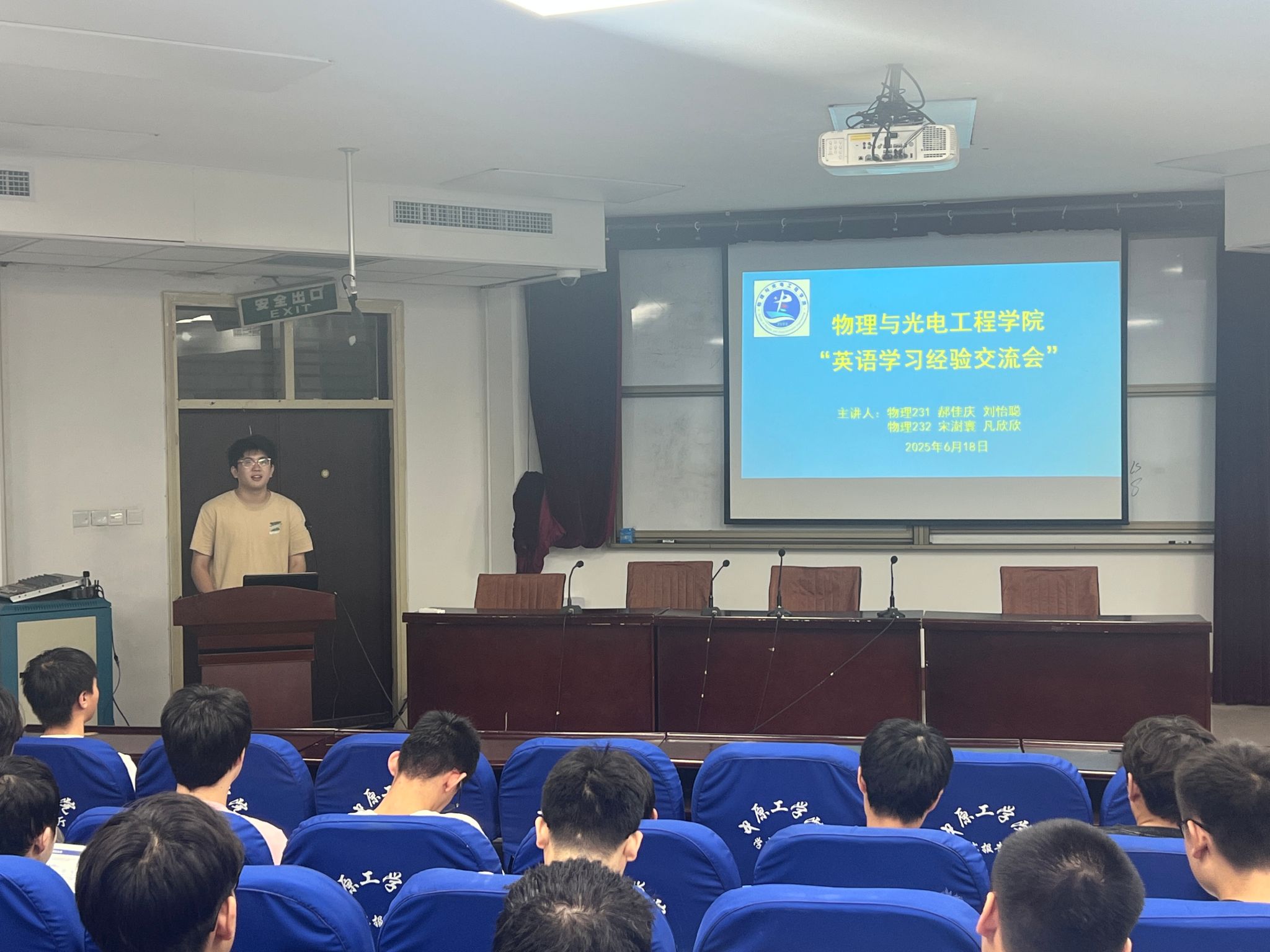 学院邀请通过大学英语六级考试的四名学生代表分享英语学习和考试技巧。郝佳庆同学通过举例子强调了英语词汇在英语学习中的重要性,分享了听力精听训练、阅读抓取关键信息的方法,同时介绍了合理的答题顺序和各题型应对策略。刘怡聪同学围绕真题练习,提出积累低频与高级词汇、总结听力正确选项规律的学习方法,针对选词填空、长篇匹配和翻译等题型,结合自身经验给出实用解题技巧。宋澍寰同学着重分享了听力和作文的学习方法,建议通过“听写对照法”训练听力,利用睡前时间收听英语广播培养语感。凡欣欣同学分享阅读高分经验,详细讲解阅读答题顺序、文章主旨把握技巧及段落匹配方法,推荐了听力翻译学习博主,为同学们提升英语能力提供有效参考。