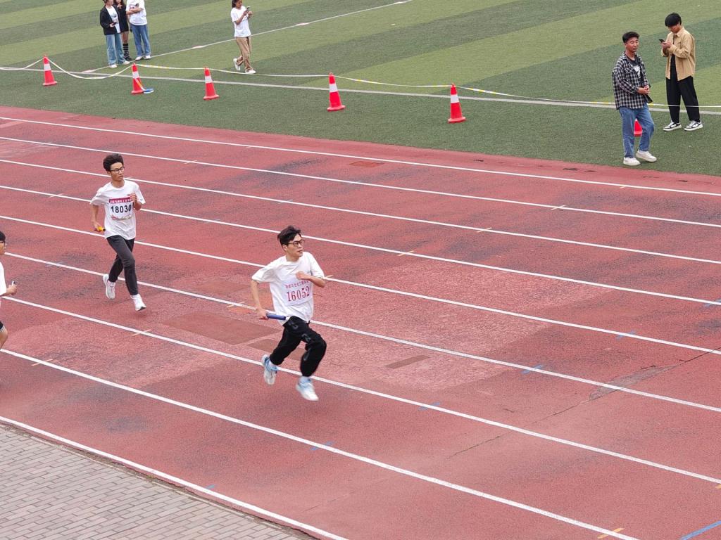 全体学生各司其职,方阵表演精神昂扬,运动员奋力拼搏,看台观众呐喊助威,后勤保障人员贴心服务……其中宋健、刘中凯、李中裕和王艺霖四名同学在男子组4*400米接力赛配合默契,获得第七名的好成绩。