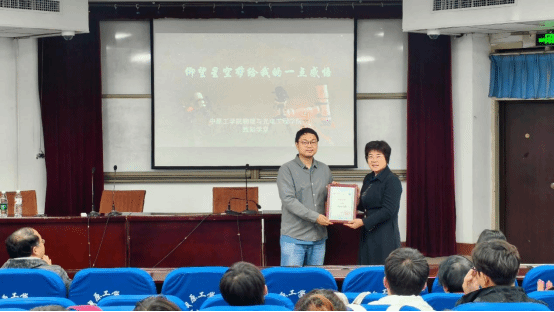 2025年10月17日,学院“致知学堂”第九讲在龙湖校区成功开讲。报告会以《仰望星空带给我的一点感悟》为题,特邀华中师范大学研究员牛晨辉担任主讲嘉宾,全院研究生及本科生参加,由党总支副书记刘自范主持,执行院长方莉俐为牛晨辉研究员颁发“致知学堂”主讲嘉宾证书。
